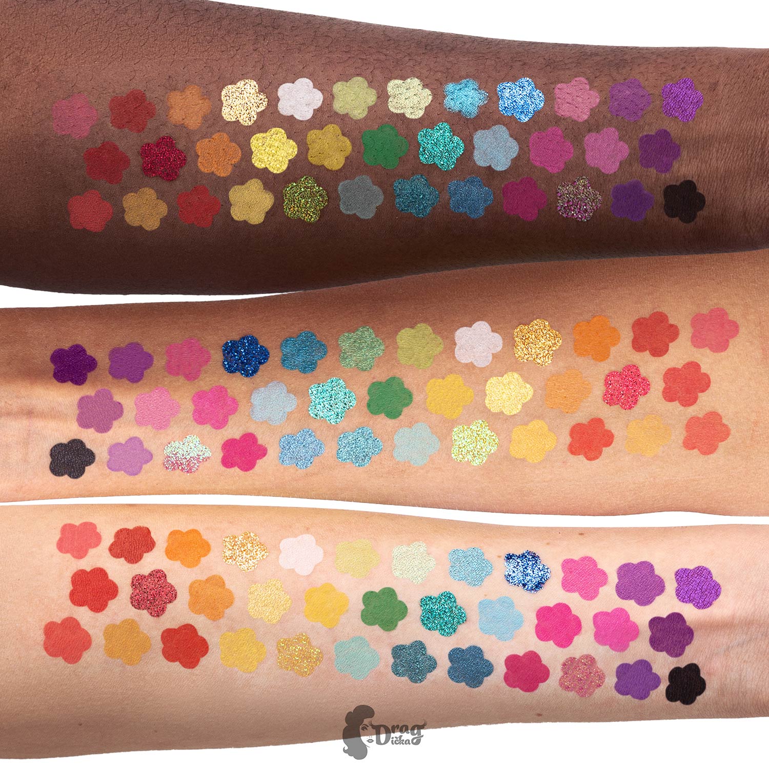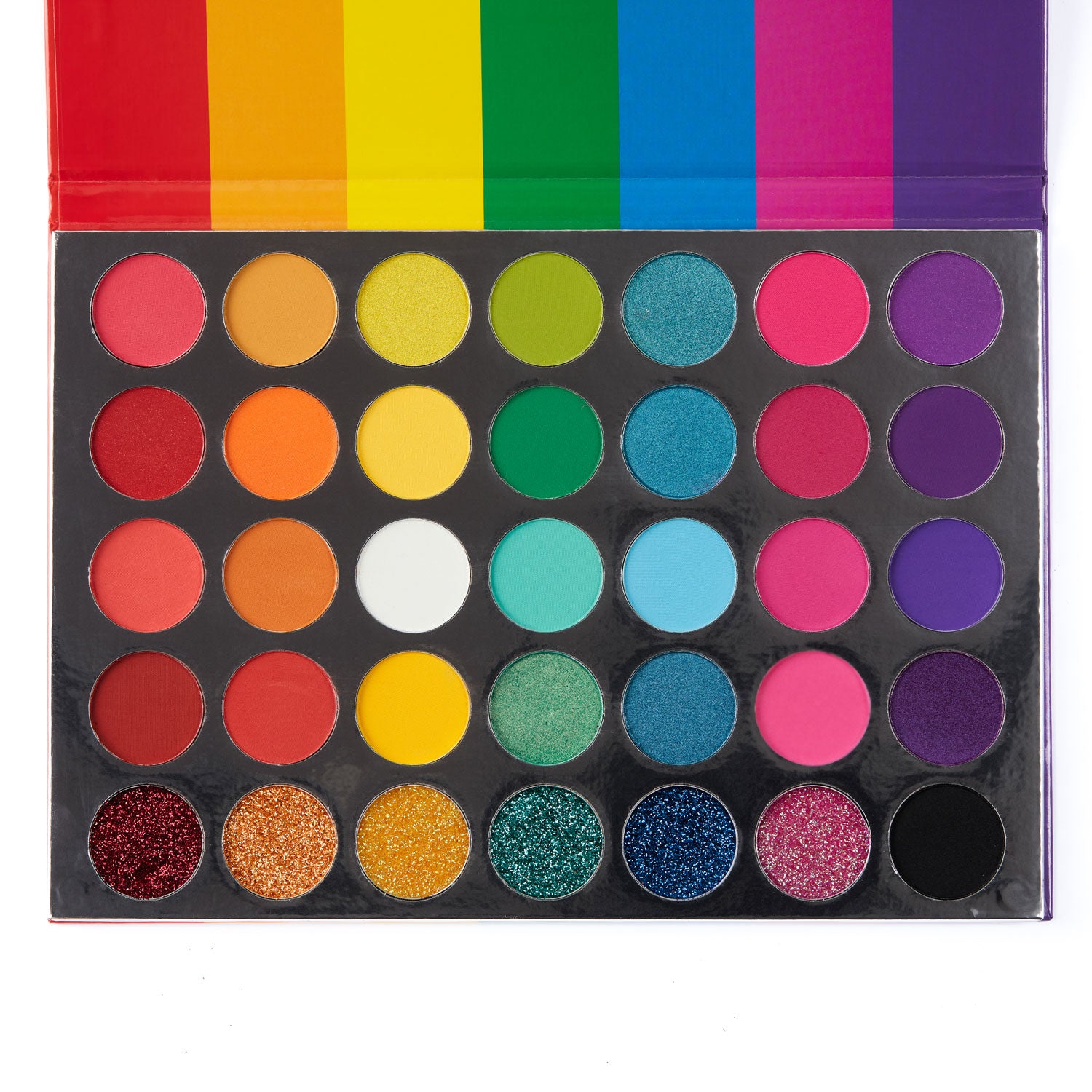 From stand-out mattes, to vivacious shimmers to punchy glitters - Dragička's Rainbow Rush palette brings you the joy of endless creativity in 35 pans of rainbow colors.